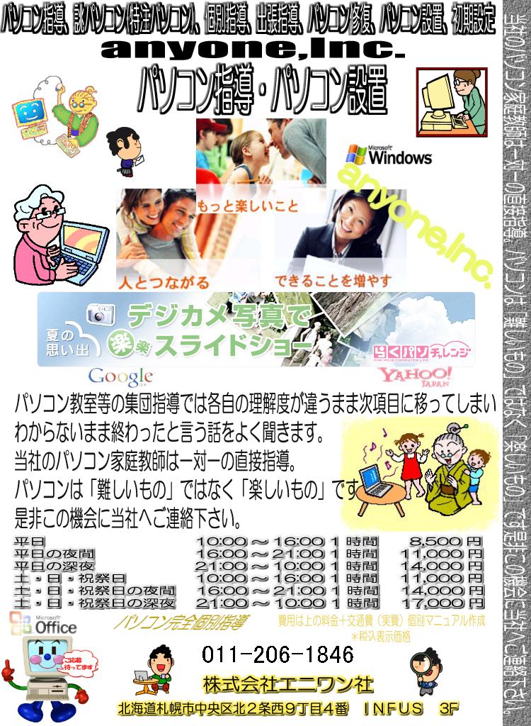 パソコンは「難しいもの」ではなく「楽しいもの」です是非この機会に当社へご連絡下さい。 |